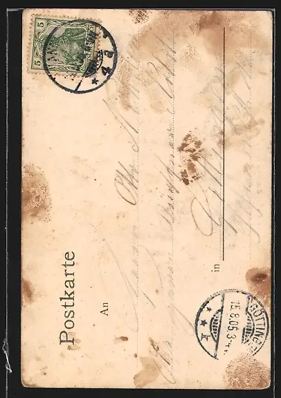 alte Ansichtskarte, gelaufen 1905, Bugspur li. mittig, guter Zustand
