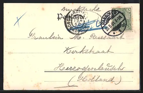 alte Ansichtskarte, gelaufen 1901, Stempelspur, guter Zustand