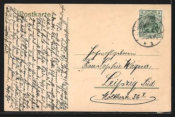 alte Ansichtskarte, gelaufen 1907, Stempelspur, guter Zustand