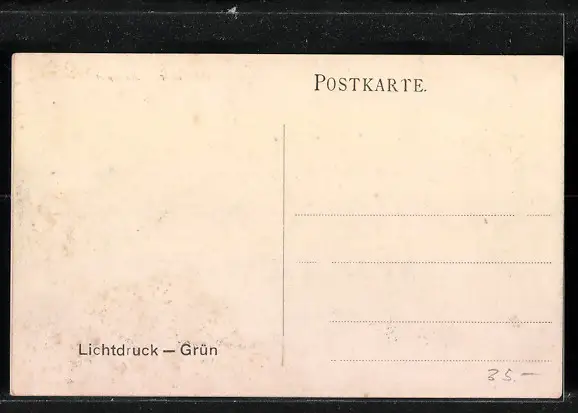 Personenbezogene Daten auf der Rückseite der Karte wurden durch blauen Textmarker unkenntlich gemacht. Die blauen Stellen sind auf die Vorderseite durchgeweicht und wirken sich negativ auf das Postkartenfoto aus
