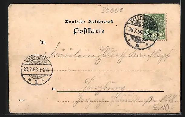 alte Ansichtskarte, gelaufen 1898, guter Zustand