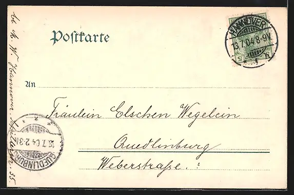 alte Ansichtskarte, gelaufen 1904, Stempelspur, guter Zustand