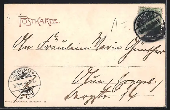 alte Ansichtskarte, gelaufen 1904, Stempelspur, guter Zustand