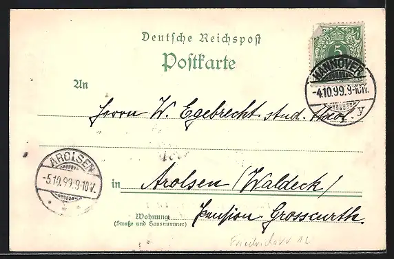 alte Ansichtskarte, gelaufen 1899, Briefmarke entfernt, guter Zustand