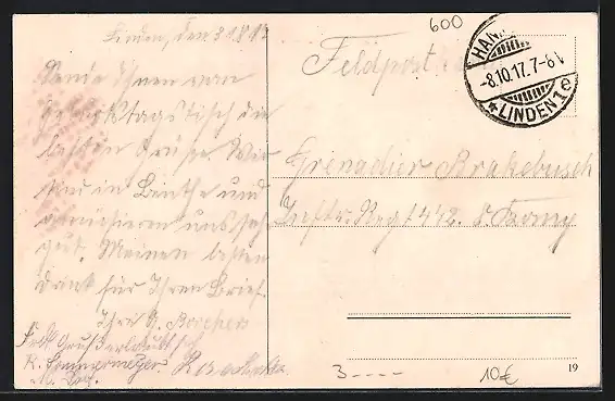alte Ansichtskarte, gelaufen 1917, guter Zustand