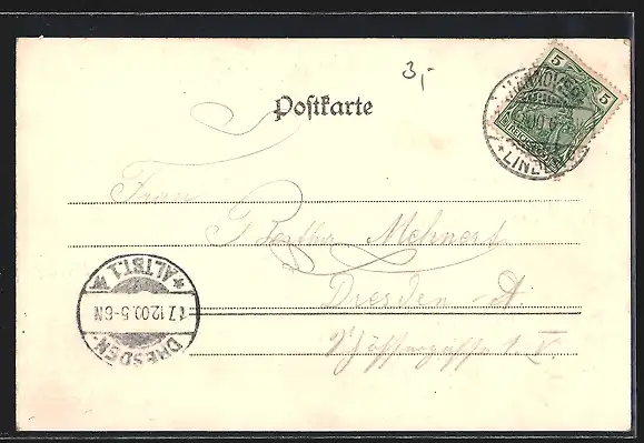 alte Ansichtskarte, gelaufen 1900, guter Zustand