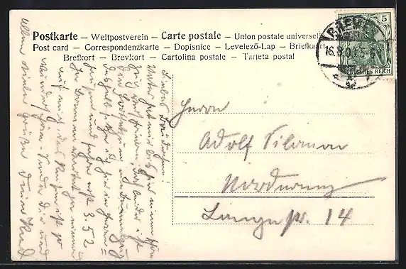 alte Ansichtskarte, gelaufen, Stempelspur, guter Zustand