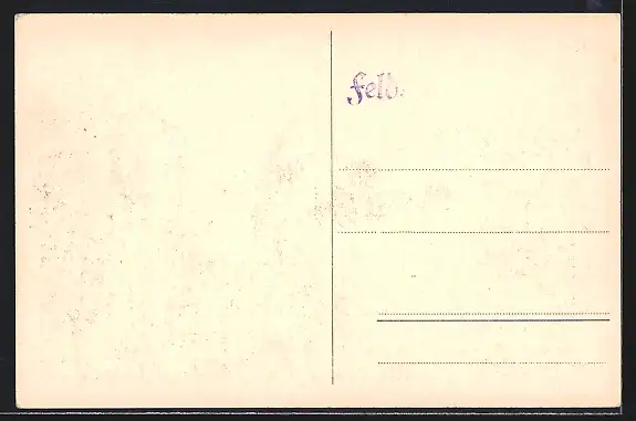 Personenbezogene Daten auf der Rückseite der Karte wurden durch blauen Textmarker unkenntlich gemacht. Die blauen Stellen sind auf die Vorderseite durchgeweicht und wirken sich negativ auf das Postkartenfoto aus