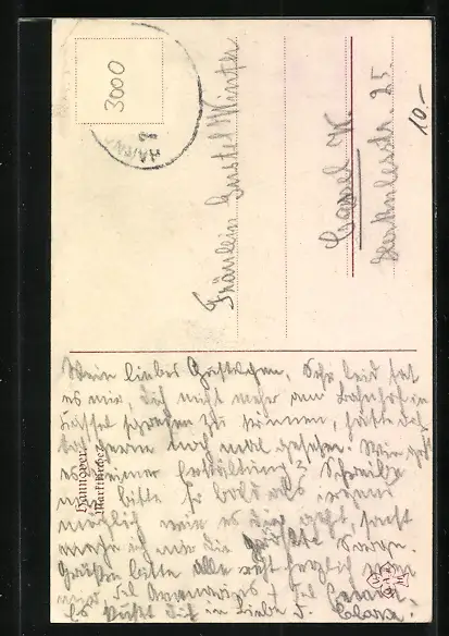 alte Ansichtskarte, gelaufen, Briefmarke entfernt, guter Zustand