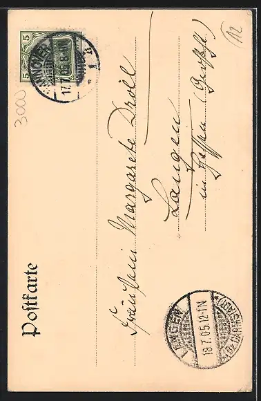 alte Ansichtskarte, gelaufen 1905, Eckknick unten li., Stempelspur, guter Zustand