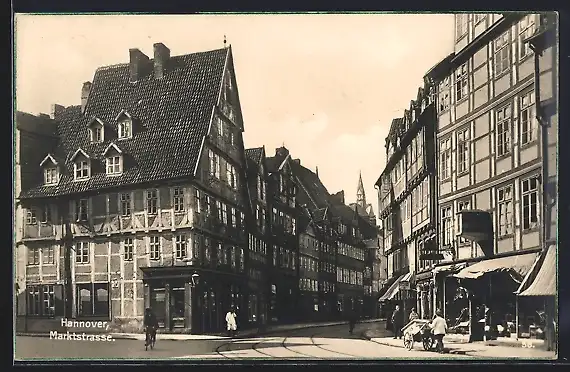 AK Hannover, Marktstrasse mit Geschäften