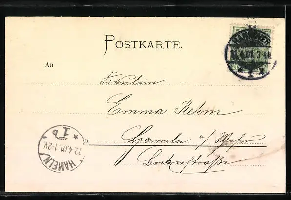 alte Ansichtskarte, gelaufen 1901, Albumspuren, guter Zustand