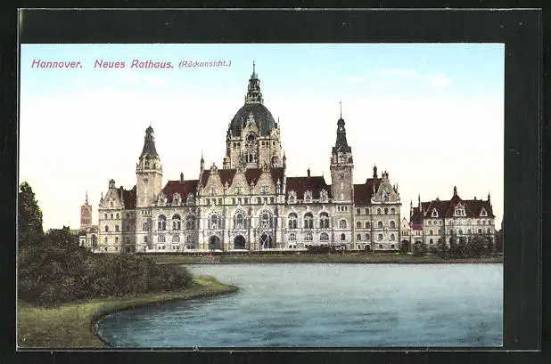 AK Hannover, Neues Rathaus, Rückansicht
