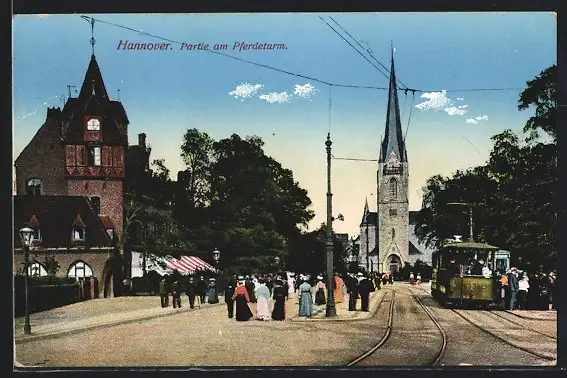 AK Hannover, Partie am Pferdeturm, Strassenbahn