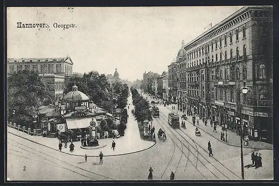 AK Hannover, Partie an der Georgstrasse mit Strassenbahn