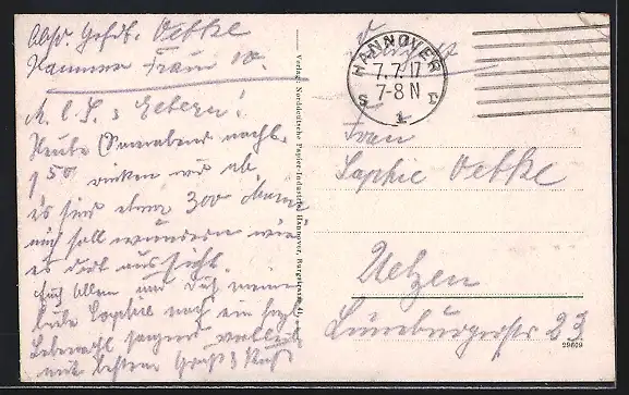 alte Ansichtskarte, gelaufen 1917, Eckknicke oben li. u. unten re., guter Zustand