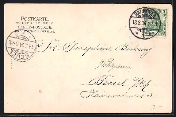 alte Ansichtskarte, gelaufen 1904, guter Zustand