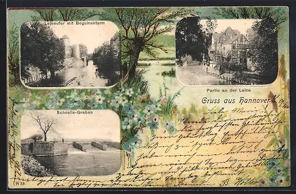 AK Hannover, Partie an der Leine, Beguinenturm, Schnelle Graben