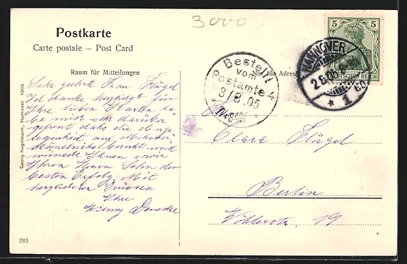 alte Ansichtskarte, gelaufen 1905, Stempelspur, guter Zustand
