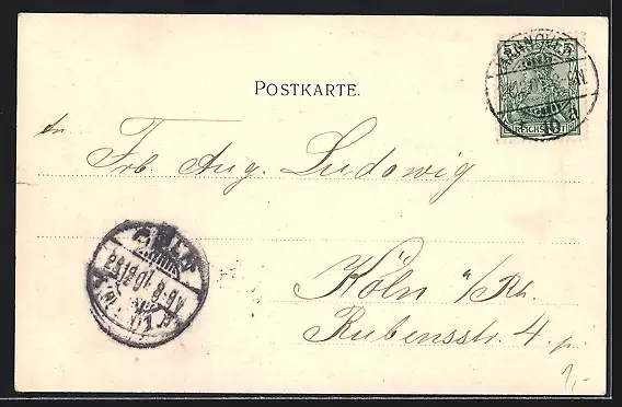alte Ansichtskarte, gelaufen 1901, minimaler Einriss re. mittig, guter Zustand