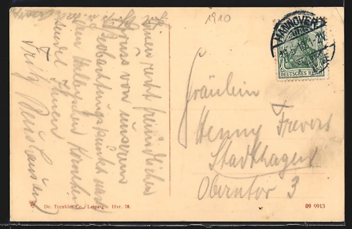alte Ansichtskarte, gelaufen 1912, Eckknick oben links, guter Zustand