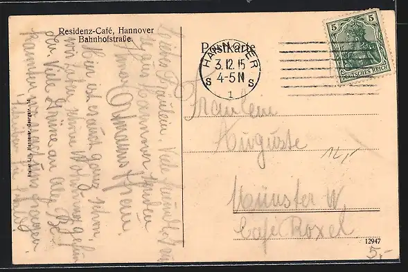 AK Hannover, Residenz-Café, Bahnhofstrasse, Innenansicht