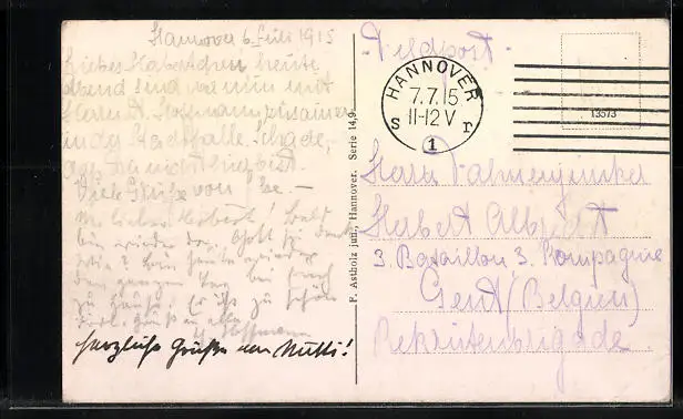 alte Ansichtskarte, gelaufen als Feldpost 1915, Eckknick unten links, guter Zustand