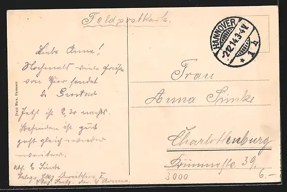 alte Ansichtskarte, gelaufen 1914, Stempelspur, guter Zustand