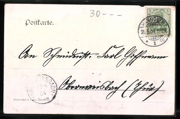alte Ansichtskarte, gelaufen 1904, Eckknick und kleiner Einriss links unten, guter Zustand