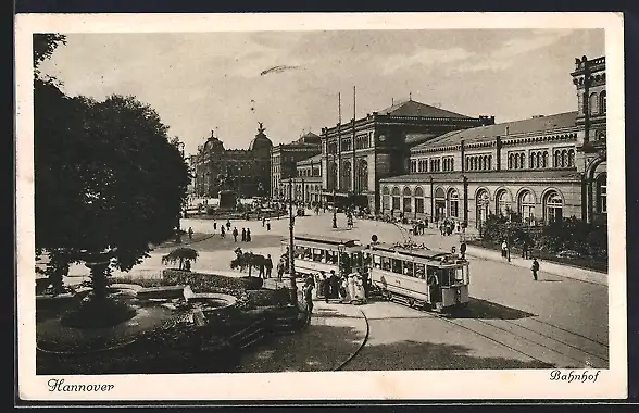AK Hannover, Strassenbahn vor dem Bahnhof