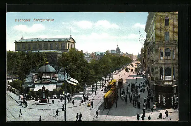 AK Hannover, Strassenbahnen in der Georgstrasse