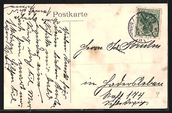 alte Ansichtskarte, gelaufen 1906, Stempelspur, guter Zustand