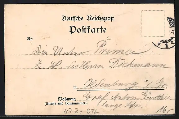 alte Ansichtskarte, gelaufen, Briefmarke entfernt, guter Zustand