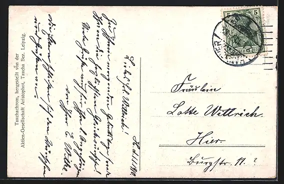 alte Ansichtskarte, gelaufen 1910, Stempelspur, guter Zustand