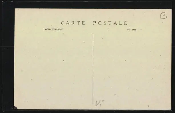 Personenbezogene Daten auf der Rückseite der Karte wurden durch blauen Textmarker unkenntlich gemacht. Die blauen Stellen sind auf die Vorderseite durchgeweicht und wirken sich negativ auf das Postkartenfoto aus