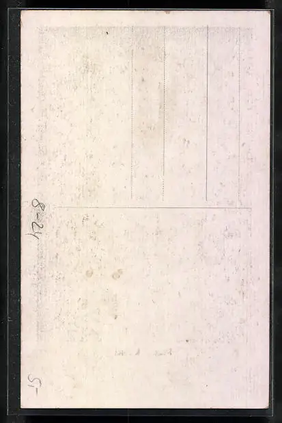 Personenbezogene Daten auf der Rückseite der Karte wurden durch blauen Textmarker unkenntlich gemacht. Die blauen Stellen sind auf die Vorderseite durchgeweicht und wirken sich negativ auf das Postkartenfoto aus