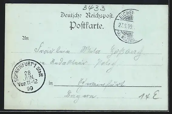 alte Ansichtskarte, gelaufen 1899, Briefmarke entfernt, guter Zustand
