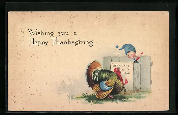 AK Happy Thanksgiving, Kleiner Junge mit Truthahn