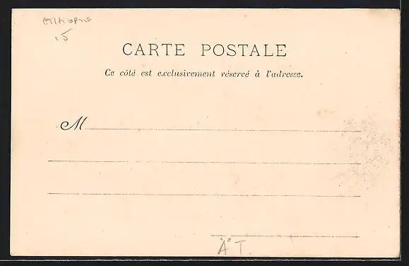 Personenbezogene Daten auf der Rückseite der Karte wurden durch blauen Textmarker unkenntlich gemacht. Die blauen Stellen sind auf die Vorderseite durchgeweicht und wirken sich negativ auf das Postkartenfoto aus