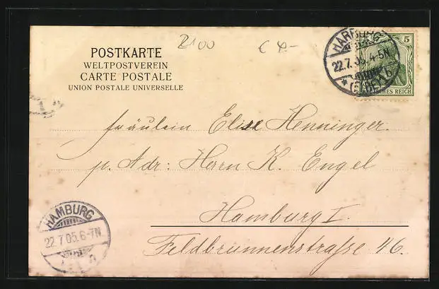 alte Ansichtskarte, gelaufen 1905, guter Zustand