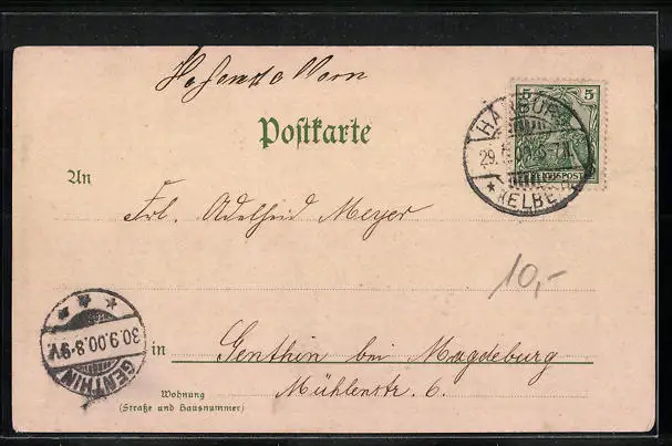 alte Ansichtskarte, gelaufen 1900, guter Zustand