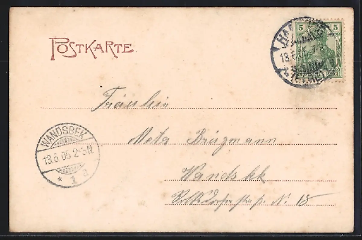 alte Ansichtskarte, gelaufen 1905, guter Zustand