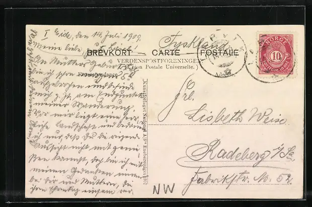 alte Ansichtskarte, gelaufen 1909, guter Zustand