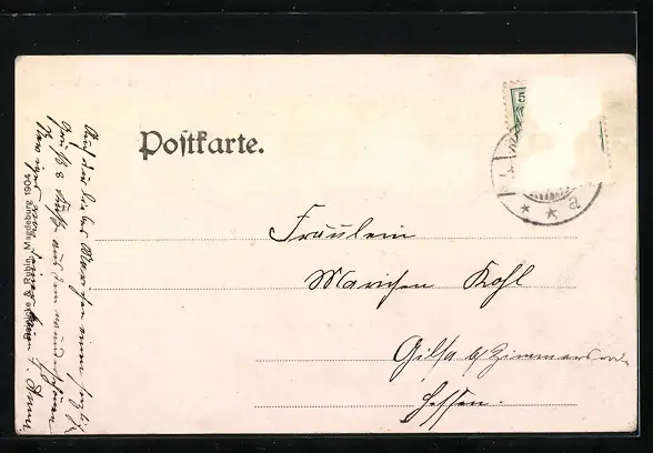 alte Ansichtskarte, gelaufen, Briefmarke entfernt, rückseitig Oberflächenschaden, guter Zustand