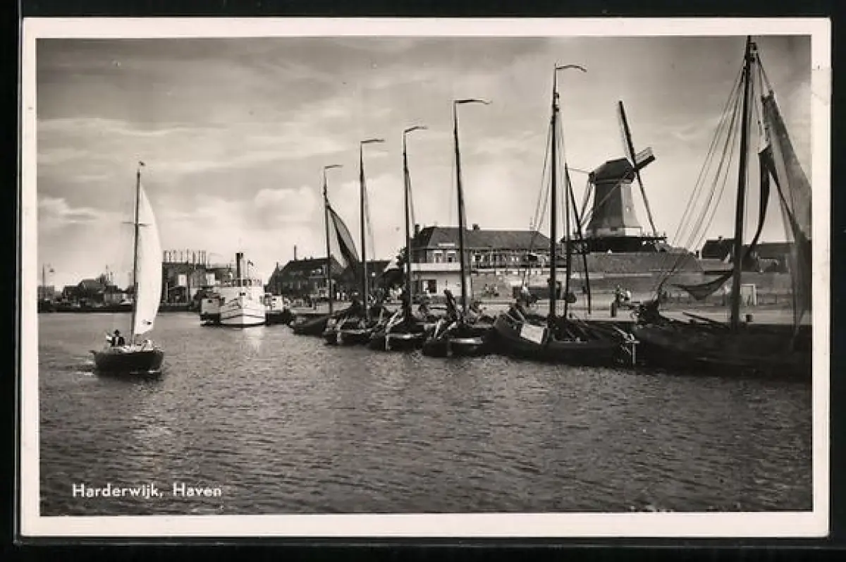 AK Harderwijk, Hafen mit Segelschiffen, Windmühle