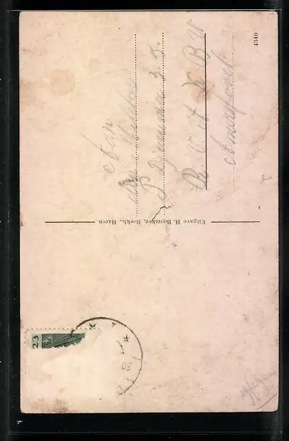 alte Ansichtskarte, gelaufen, Briefmarke entfernt, rückseitig Oberflächenschaden, guter Zustand