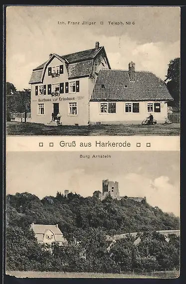 AK Harkerode, Gasthaus zur Erholung, Burg Arnstein