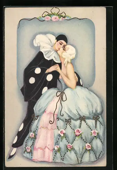 AK Harlekin küsst seine Geliebte