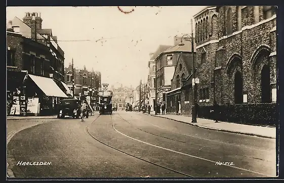 AK Harlesden, Strassenbahn und Geschäfte