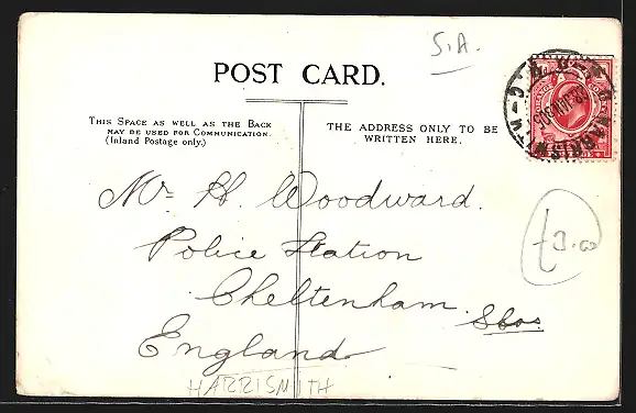 gelaufen 1905, Eckknick re. unten, Abriebspur oben mittig, guter Zustand
